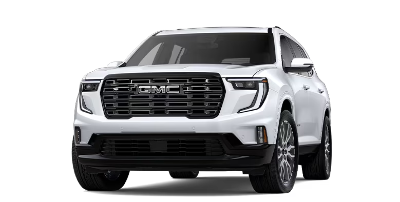 The GMC Acadia mid-size SUV is available in the hardworking Elevation, the off-road-ready AT4, and the luxurious Denali and Denali Ultimate.