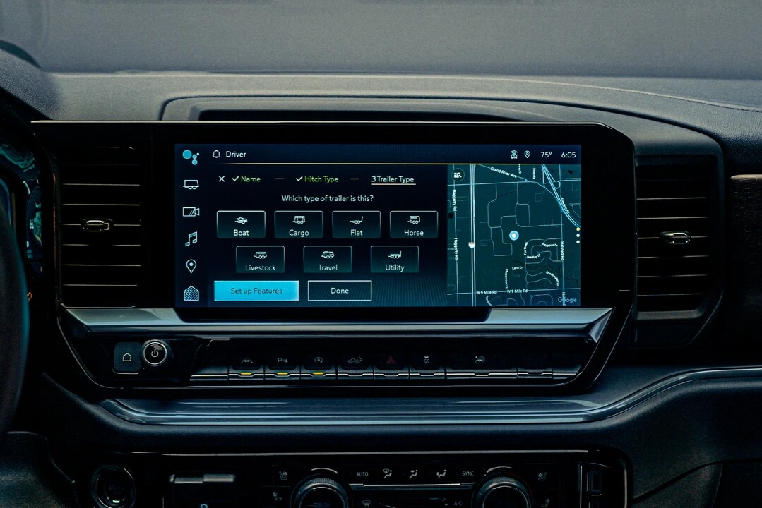 Chevy Silverado 1500: Expect most Silverado 1500 models to feature a 13.4-inch horizontal touchscreen with a Google-powered voice assistant, available Amazon Alexa integration, and wireless Apple CarPlay and Android Auto. The entire system is a breeze to use and features prompt responses to inputs. There are also many driver assistance technologies that are similar to the Sierra 1500.